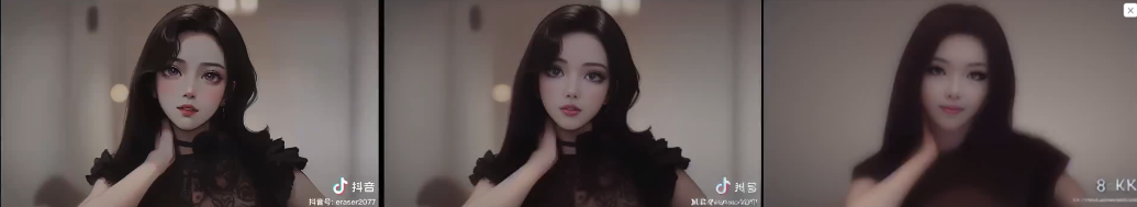 下面是原视频以及我们使用上述过程处理后的视频,左原视频、中间 0.25 重绘幅度、右 0.5 重绘幅度,重绘幅度越大与原视频差异越大: