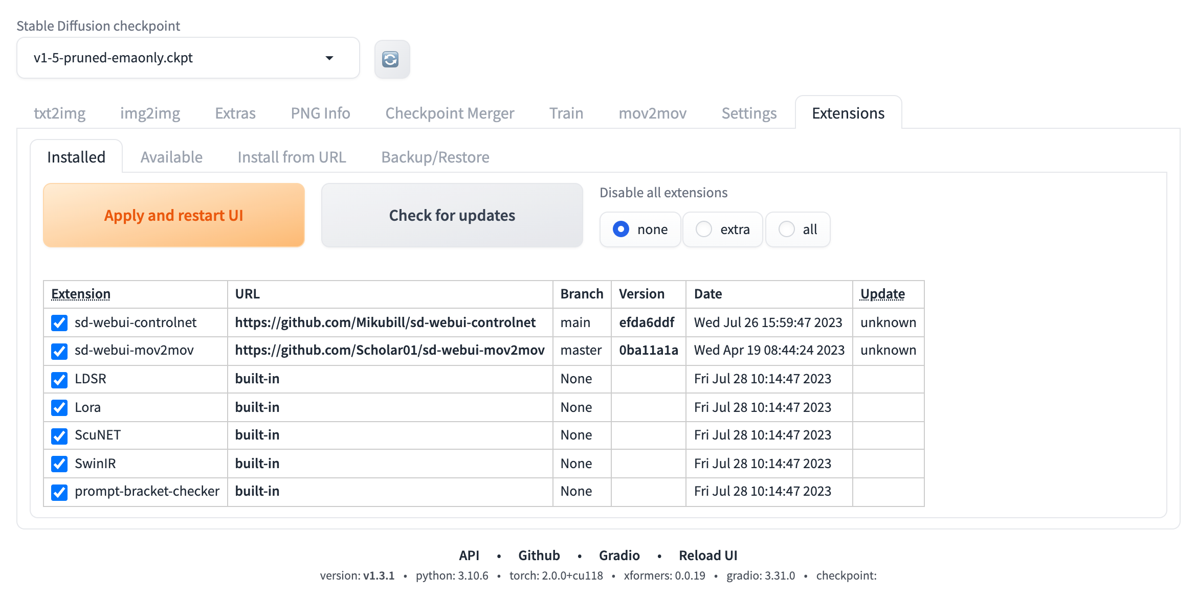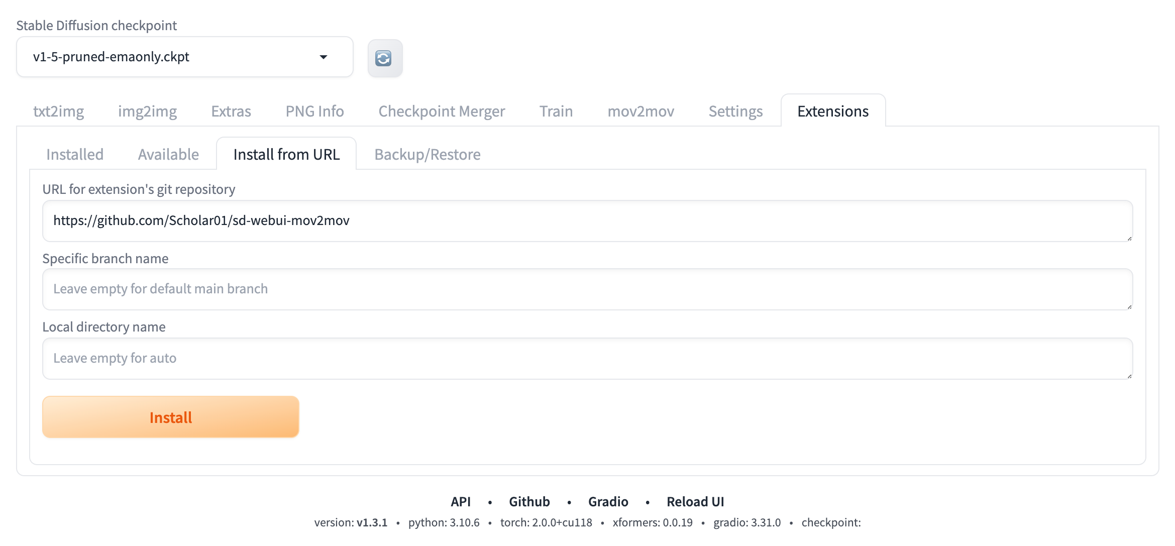 URL for extension's git repository下的输入框中输入https://github.com/Scholar01/sd-webui-mov2mov; - 4)点击